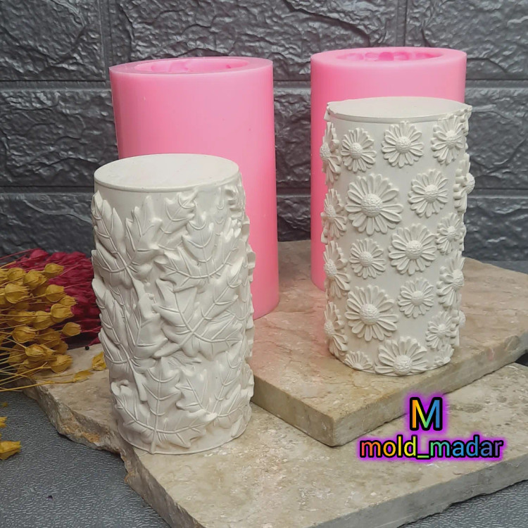 قالب سیلیکونی استوانه برگ و بابونه ابعاد ارتفاع هردو : ۱۲ سانت قطر هردو : ۶ سانت