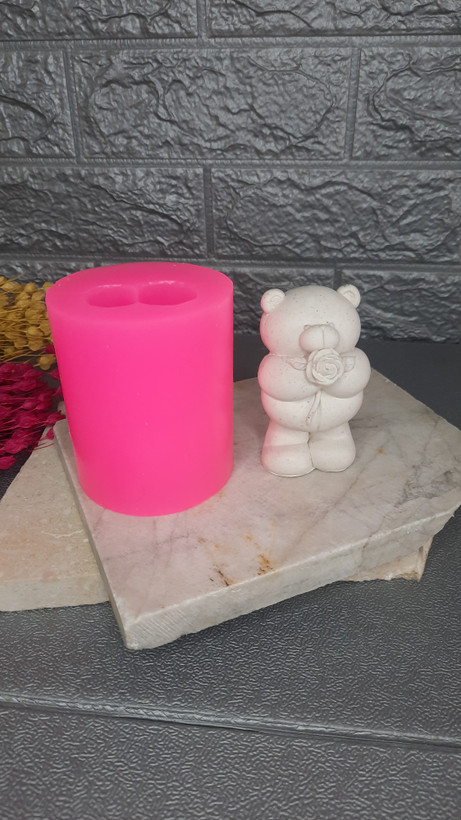 قالب سیلیکونی خرس ولنتاینی گل بدست ارتفاع ۹ سانت